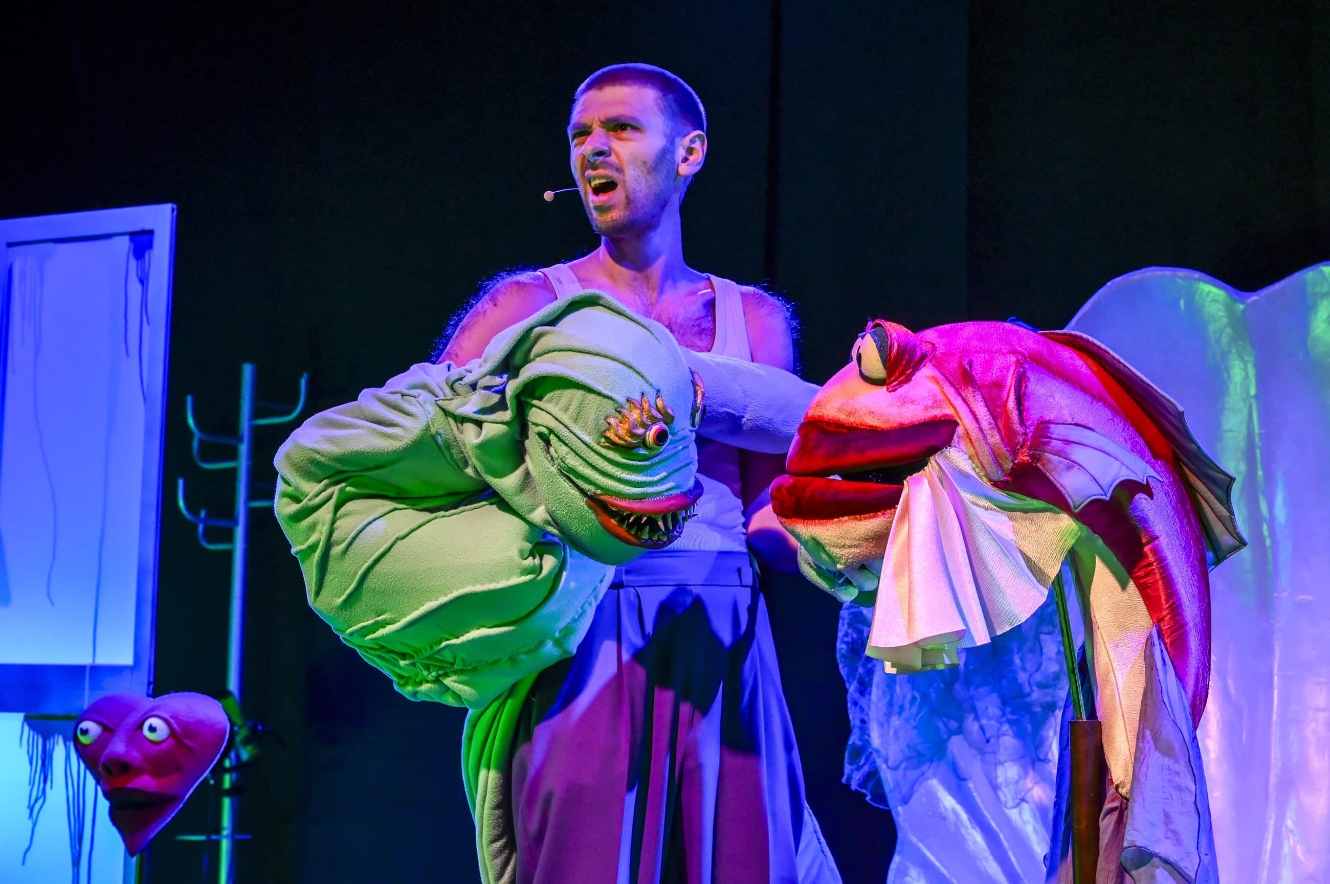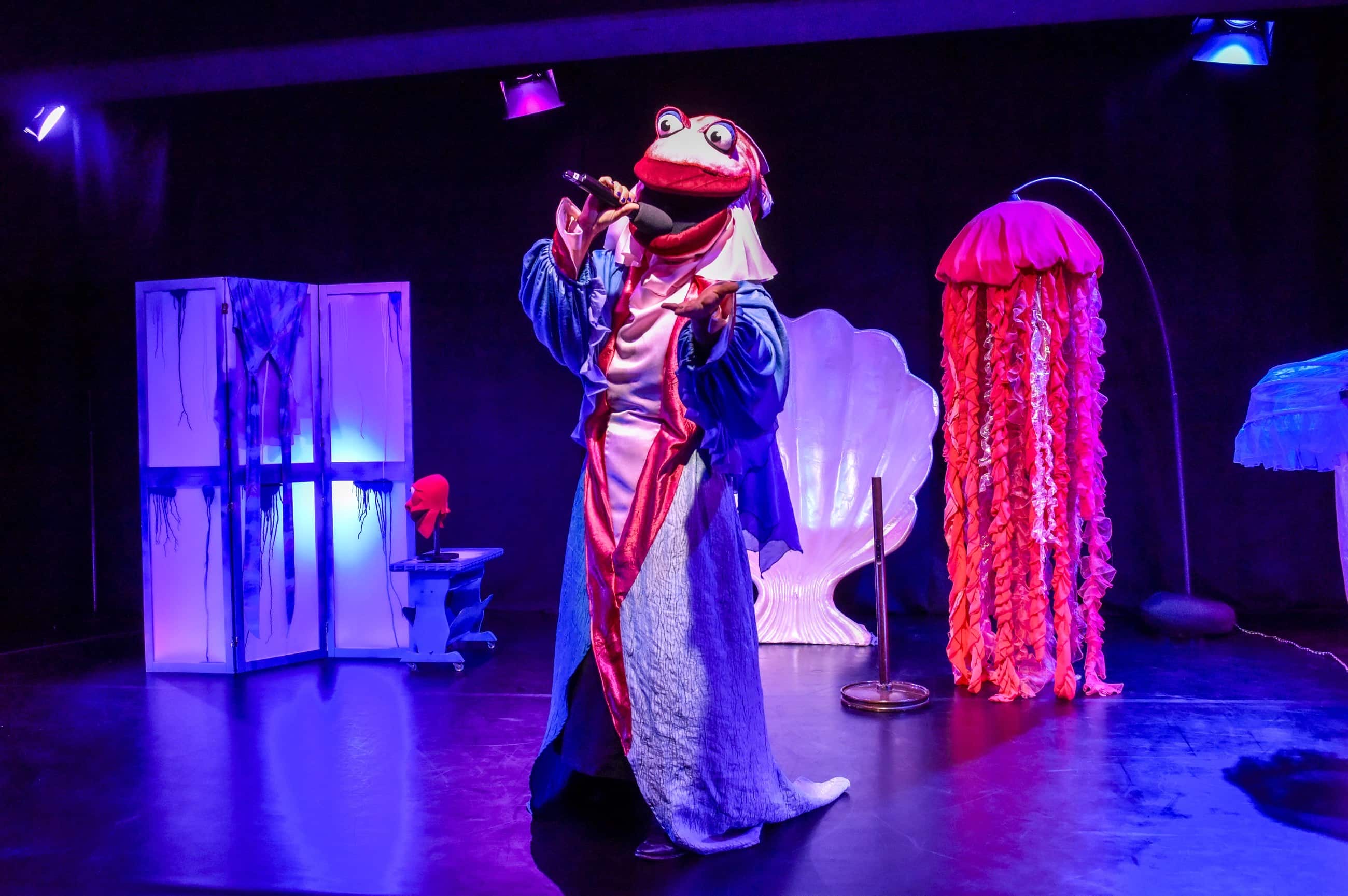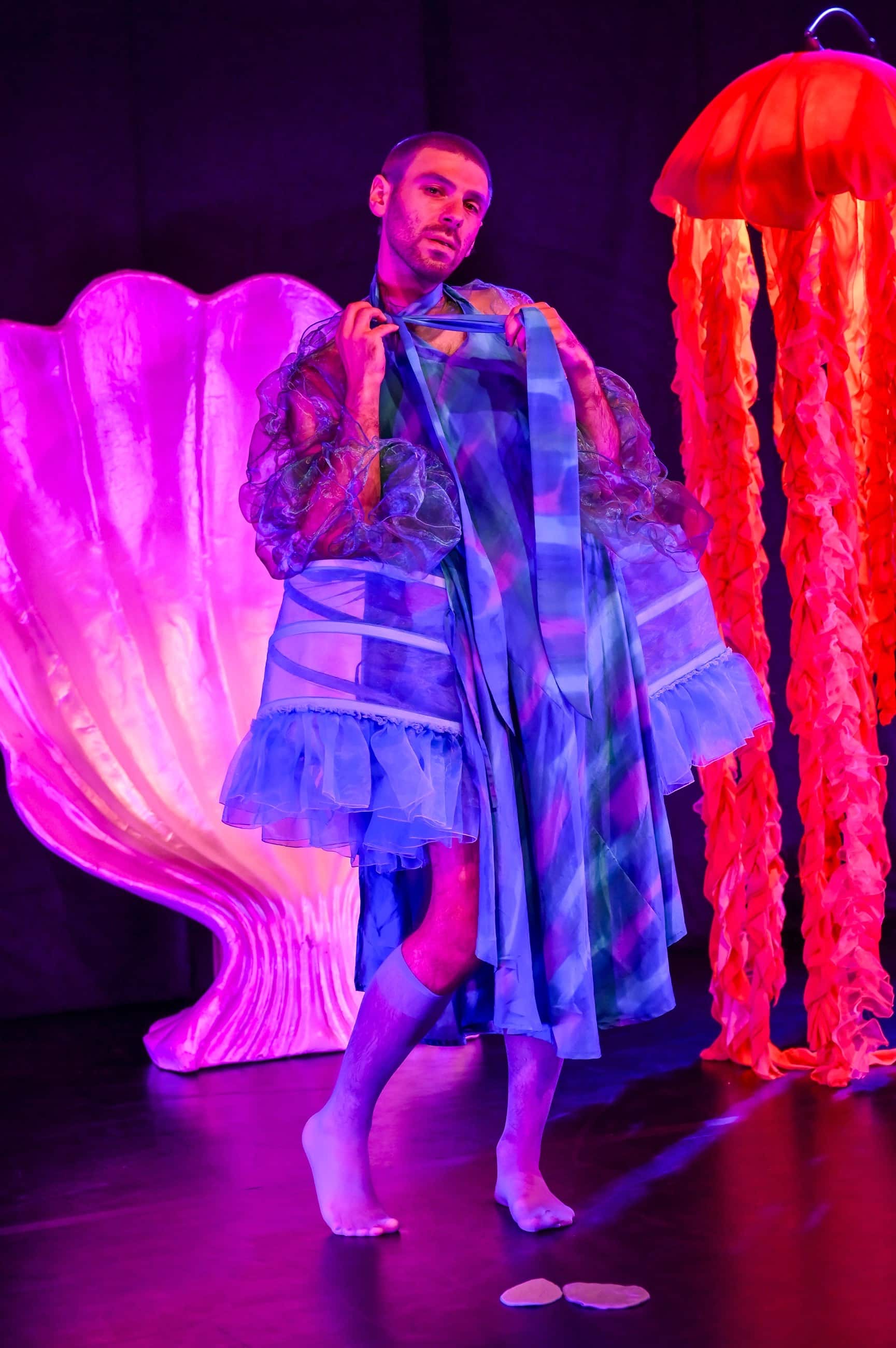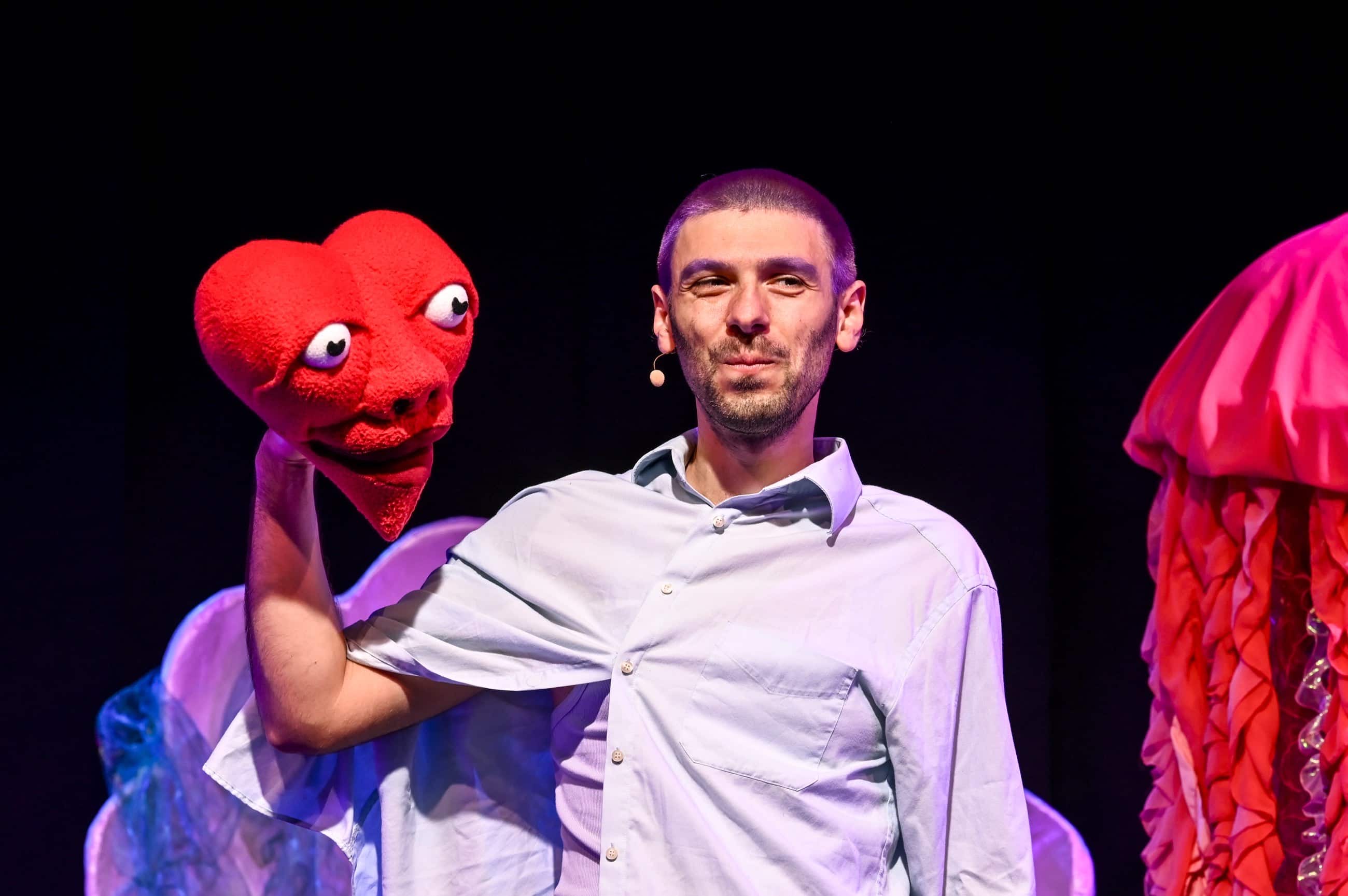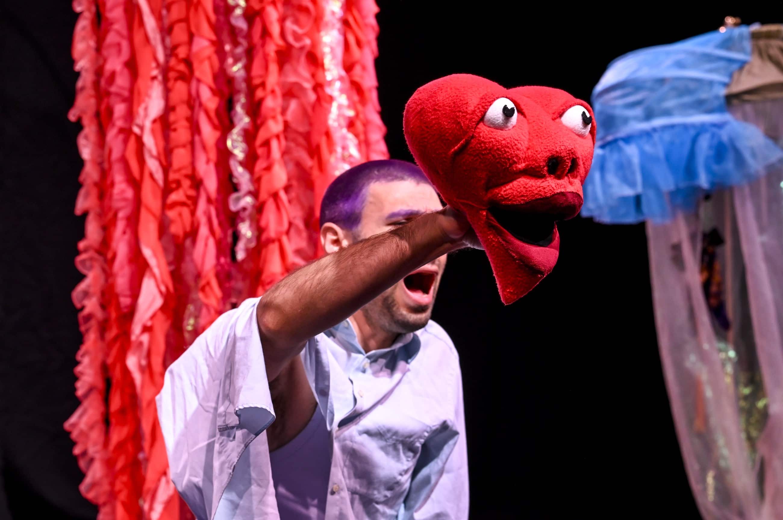 FischHerz will diese Themen verhandeln im Mantel einer glamourösen Puppenshow. Ein Märchen für Erwachsene im Spannungsfeld zwischen großen Themen und albernem Klamauk. Unser Begehren zieht uns ins Meer, wir tauchen ab in eine magische Welt und begegnen schillernden und gruseligen Meeresbewohnerinnen, doch können wir am Meeresgrund finden, was wir suchen, und was suchen wir überhaupt?